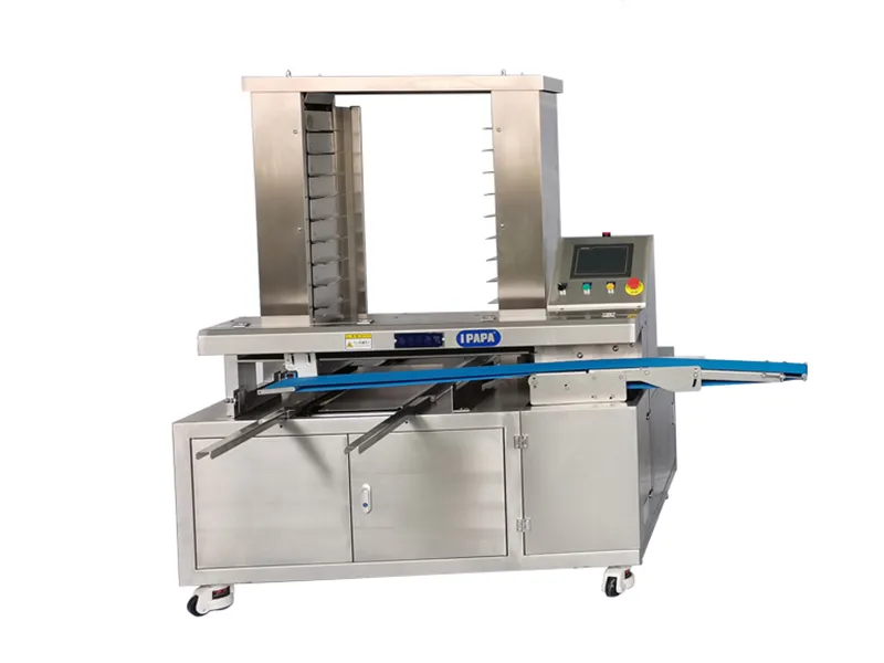 The automatic tray arranging machine is designed for large-scale food production, ensuring precise placement of food products onto baking trays. By automating the tray arrangement process, this system eliminates the need for manual handling, reducing the risk of contamination and maintaining food hygiene standards.