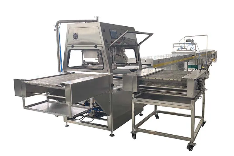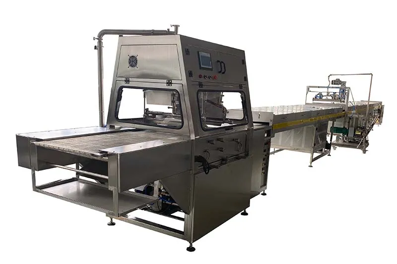 A high-efficiency solution for chocolate-coated products like candy, energy bars, brittles, cookies, biscuits, cakes, and bread, our industrial chocolate enrobing production line ensures consistent results.