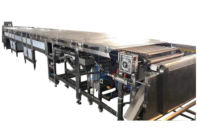 Take your chocolate-dipped treats to the next level with this fully automated production line, designed specifically for coating finger biscuits. You won’t have to worry about manual handling, the machine takes care of everything for you. From aligning and placing the biscuits to transferring, gripping, dipping, cooling, and final removal, every step is fully automated, ensuring consistent quality and efficiency.