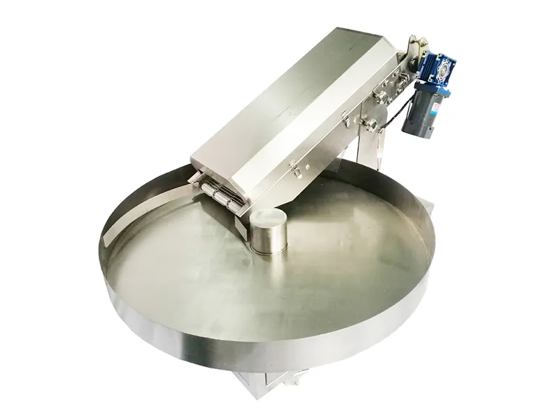 The automatic rotary flour coating machine was originally developed for large-scale production following automatic encrusting processes. Featuring a 1000mm diameter rotating table, this versatile machine accommodates multiple food forming devices. It effortlessly applies a range of coatings flour, coconut flakes, crushed nuts, seeds, chocolate chips, or granules to meet your production needs.