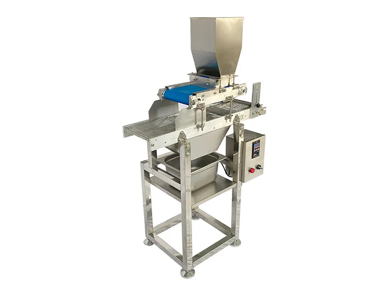 The automatic granule sprinkler can be used to add a consistent layer of toppings such as coconut flakes, corn flour, icing sugar, wheat flour, and crushed nuts to your bars or balls. By incorporating this machine into your production line, you’ll achieve beautifully finished products every time.